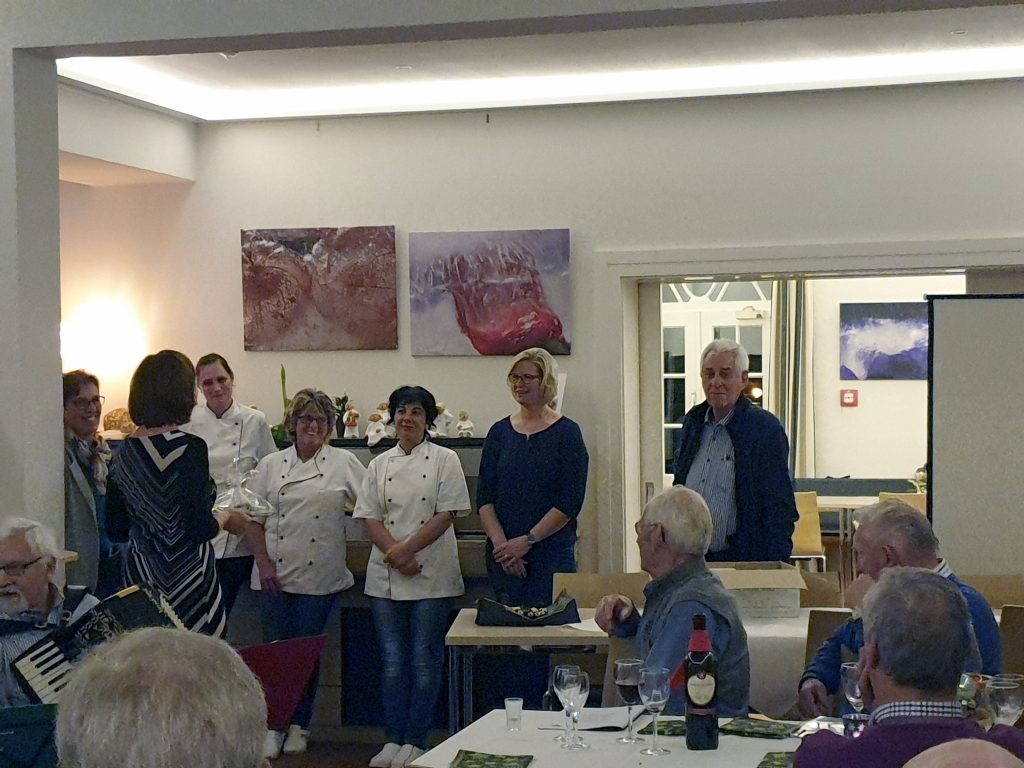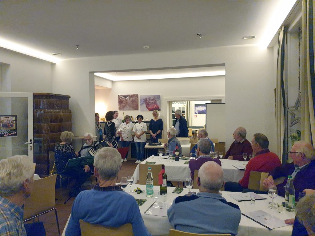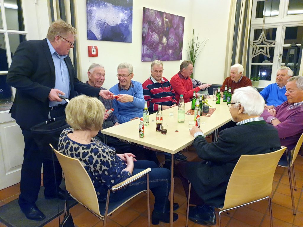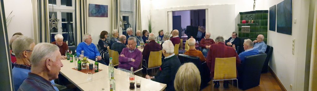 Zu einer stimmungsvollen Weihnachtsfeier lud der Vorstand des Kultur- und Heimatvereins Bassum e.V. auch dieses Jahr die Aktiven der Ü-60 Gruppe und das Dekorationsteam der Heimatstube in das Amtshaus der Freudenburg ein. Zuerst überbrachte unser Bürgermeister Christian Porsch die Grüße der Stadt Bassum. Der Bürgermeister dankte den ehrenamtlichen Helfern für die ganze Arbeit, die sie das Jahr über geleistet haben. Als kleinen Gruß der Stadt Bassum verteilte Herr Porsch Schokoladenweihnachtsmänner. Dann bat das Küchenteam der VHS zu Tisch. Die fleißigen Damen der VHS servierten ein sehr leckeres Weihnachtsmenü und sorgten während des Speisens dafür, dass kein Gast auf dem Trockenen saß. Nachdem auch die Nachspeise aufgegessen war, kam Frau Christa Skubowius von den Bassumer Gästeführerinnen an die Reihe. Frau Skubowius hatte einen Bildvortrag mitgebracht und erzählte, in sehr kurzweiliger Weise, vom Bassumer Stadt- und Landleben nach dem Krieg bis hin in die 70er Jahre. Zum Abschluß dieser gelungenen Feier wurden bei musikalischer Begleitung durch die Eheleute Irmgard und Manfred Wittich gemeinsam Weihnachtslieder gesungen und Herbert Lehmkuhl trug noch eine weihnachtliche Geschichte in Plattdeutsch vor. Es war ein rundum gelungener Abend! Ganz vielen lieben Dank an das Team der VHS, an Frau Skubowius, an die Eheleute Wittich und an Herbert Lehmkuhl für die jeweils gelungenen Beiträge!
